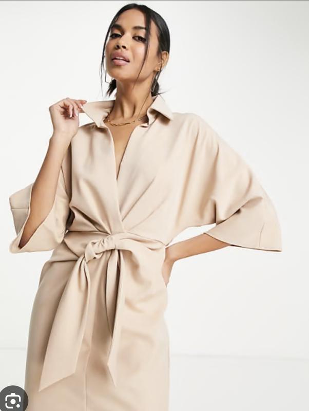 Платье цвета кемл оригинального кроя на размер xs-s , новое, сток без бумажной бирки