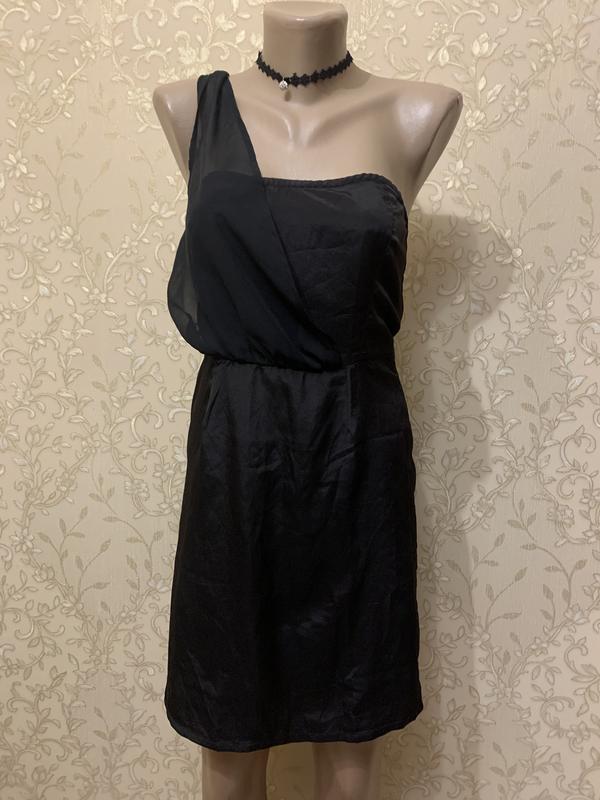 Мини платье атласное с шифоновым ремешком на плечах Очень нежное платье на S