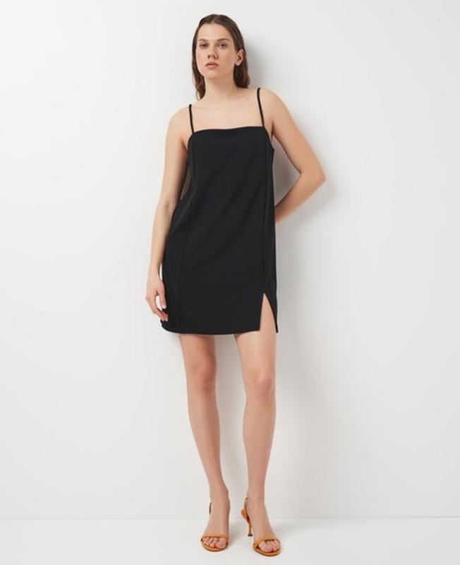 Короткое платье А-силуэта из мягкого трикотажа с узкими регулируемыми бретелями прямым подолом и коротким разрезом спереди. размер М полиэстр, эластан