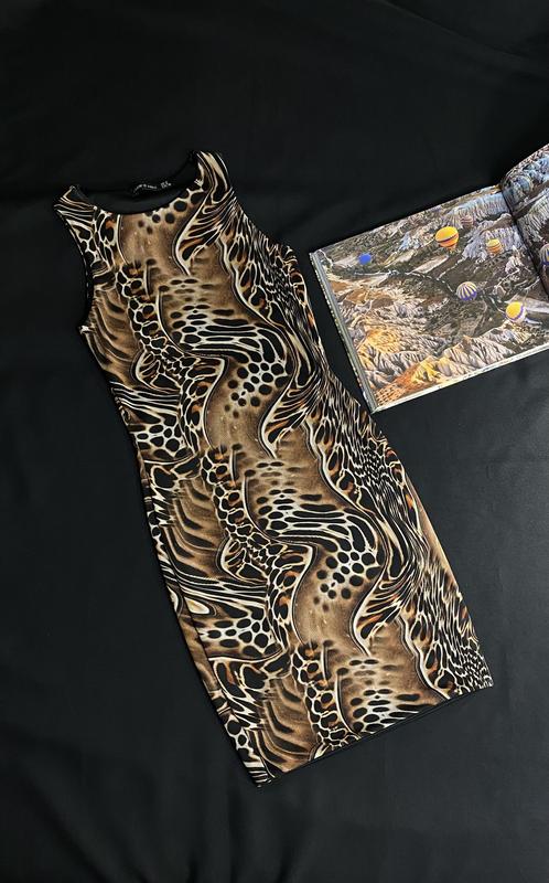 Платье с леопардовым принтом (сетка с подкладкой), тянется. Размер S
