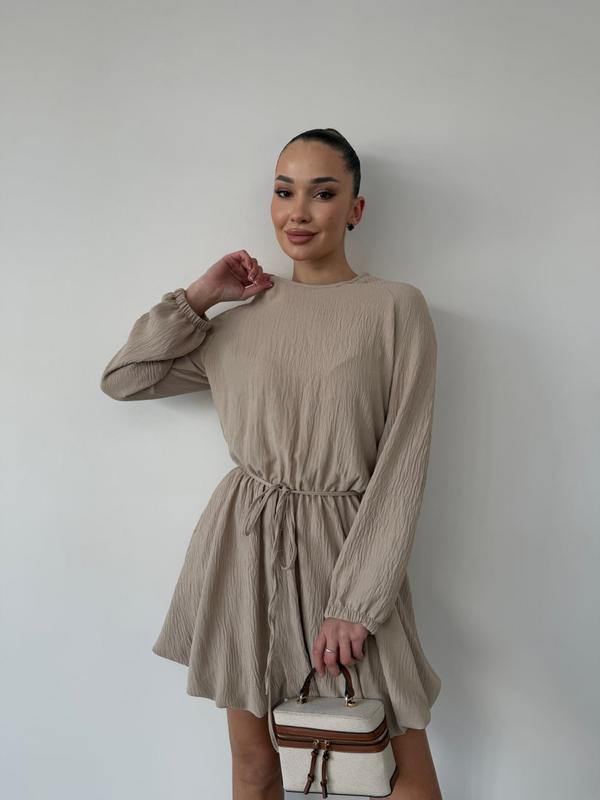 ФОТО РЕАЛ No2050 платье размер: универсал S-L(42-46) ткань: американский креп-жатка, пояс на резинке, по бокам карманы цвет: белый, беж, черный, мокко