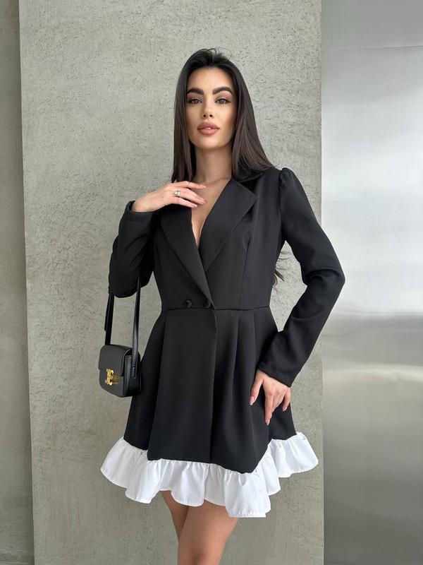 Сукня Мод.535 Размер:42-44,46-48 Тканина: Костюмка+софт Цвет: черный+белый рин) Роскошное платье-пиджак в котором ты будешь непревзойденно