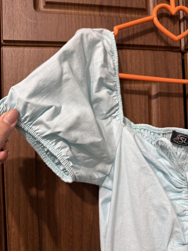 Летнее платье, присоединенную голубей. Гарна тканина, схожа на льон. Размер хл (48) сзади резинка, на груди завязки. Купила себе, малая вшить нестаклое ((