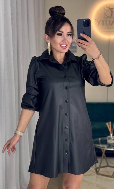 Стильное платье из качественной эко кожи на трикотажной основе. Платье А-силуете, идеально садится на любые бедре. Свободного кроя от груди. Мод. 405 Размеры: 42-46,48-52 ,54-58 Ткань: эко кожа на трикотаже Цвет:черный Материал приятный к телу, мягкий. За ним удобно ухаживать. Данная модель универсальна, с ней можно создать любой образ, будь то классика или спорт. На модели 42-46 размер