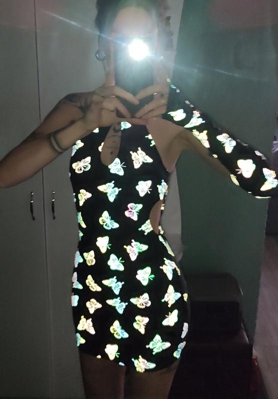 ⚠️ Перед покупкой 76 ознакомиться с разделом "про меня" - Нереально крутое платье с светоотражающими бабочками 🦋✨🌈 На фото видно как платье смотрится с вспышкой и без - этикетка с размером срезанная, подойдет на XS-S, ткань тянется, одетая на 82/74/92 рост 178, на меньший рост будет лучше, смотрите замеры - общая длина 76, грудь полуобхват 35-43, талия 29-35, бедра 40-48 - состояние идеальное, без дефектов - 395 грн ПРОШУ ВНИМАНИЕ ПРЕДУПРЕЖИТЬ ЗАМЕРЫ, ОБМЕНА И ПОВЕРНЕНИЯ НЕМЕТ Доставка: полная перерасход на карту, отправка ежедневно до 12.00