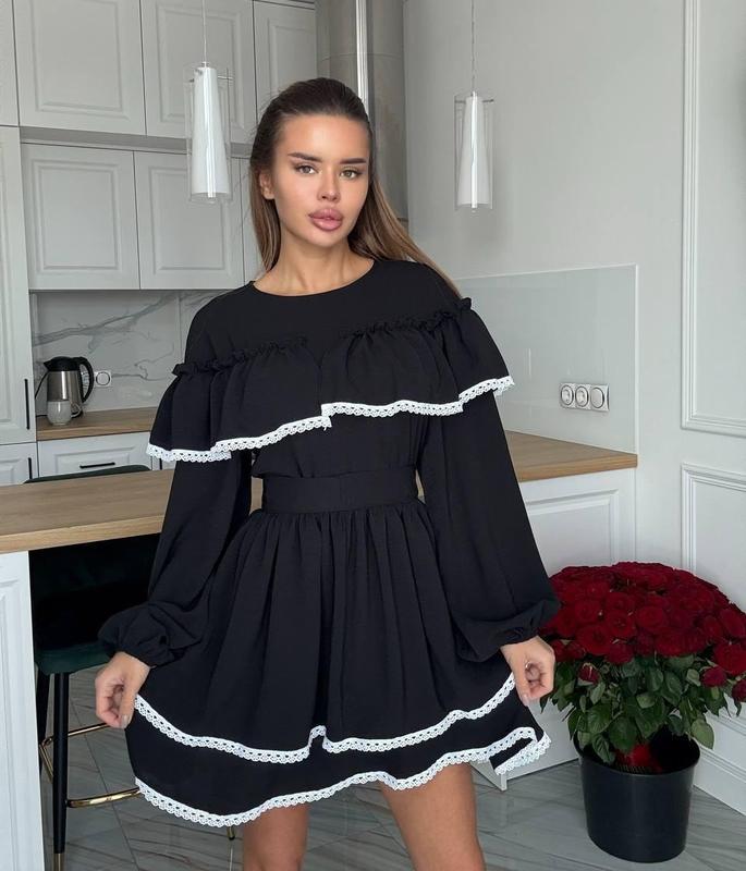 Платье с двойной юбкой 8325 Материал: креп жата. Цвет: черный, белый, розовый, голубой. Оттенки могут отличаться. Размер: S, M, L, XL. ❗❗❗