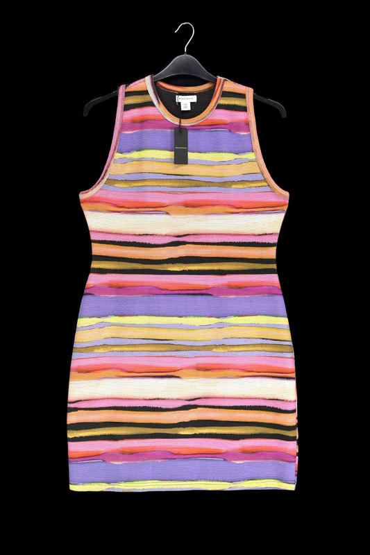 Новое брендовое платье в рубчик "Warehouse" в разноцветную полоску. Размер uk16/eur44. Состав: 65% хлопок, 33% полиэстер, 2% эластан. Замеры в нерастянутом виде: -ПОГ - 48 см; -ПОТ - 43 см; -ПОБ - 55 см; -длина платья - 92 см. Без каких-либо дефектов. Новое с биркой.