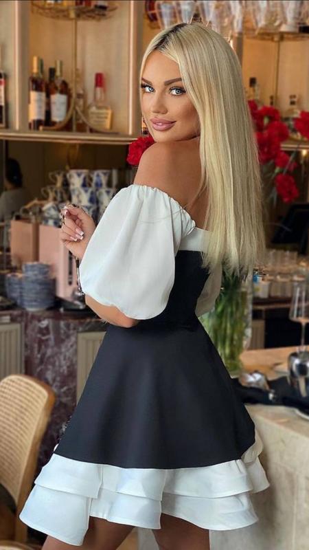 ✔️Ткань : костюмка, 100% белый коттон ✔️Цвет: черника, изумруд ✔️Размеры: 42/44; 46/48; 50/52; 54/56 Это платье состоит из двух основных цветов: черного и белого. Верх платья имеет оригинальный дизайн с комбинацией черного корсета и белых рукавов. Черный корсет придает элегантности и подчеркивает талию, в то время как белые короткие объемные рукава создают романтичный и нежный вид. Пышный белый подклад обработан кринолином. Идеальное платье для любых мероприятий 💥 Замеры: 42/44 ОГ: 84-86см 46/48 ОГ: 92-96см 50/52 ОГ:100-104см 54/56 ОГ:108-110см Длина платья: 95см