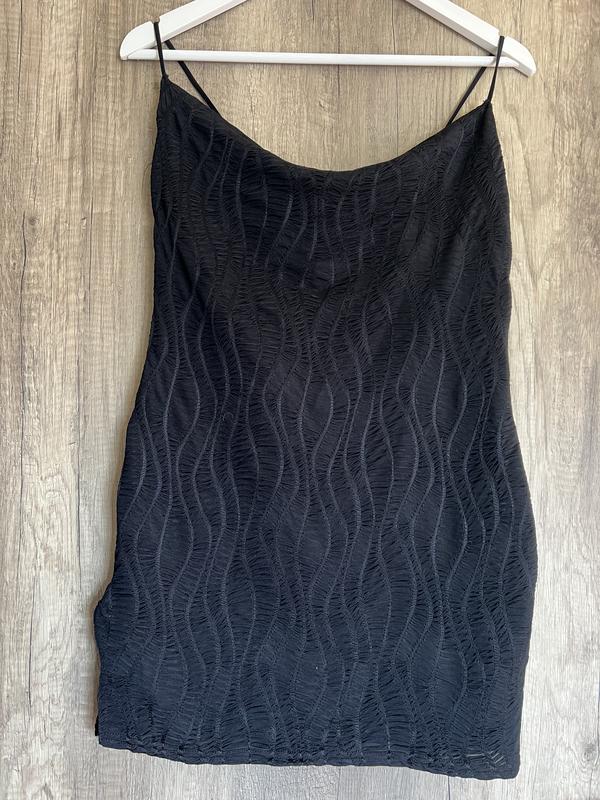 Мини платье на бретельках с разрезом на 1 ножку