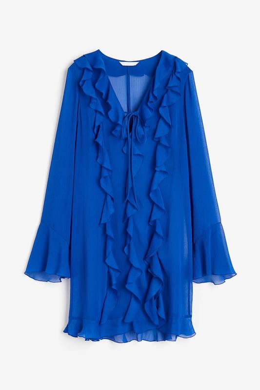 Синее прозрачное платье прозрачное платье с оборками платья с рюшами h&m пляжное плать...
