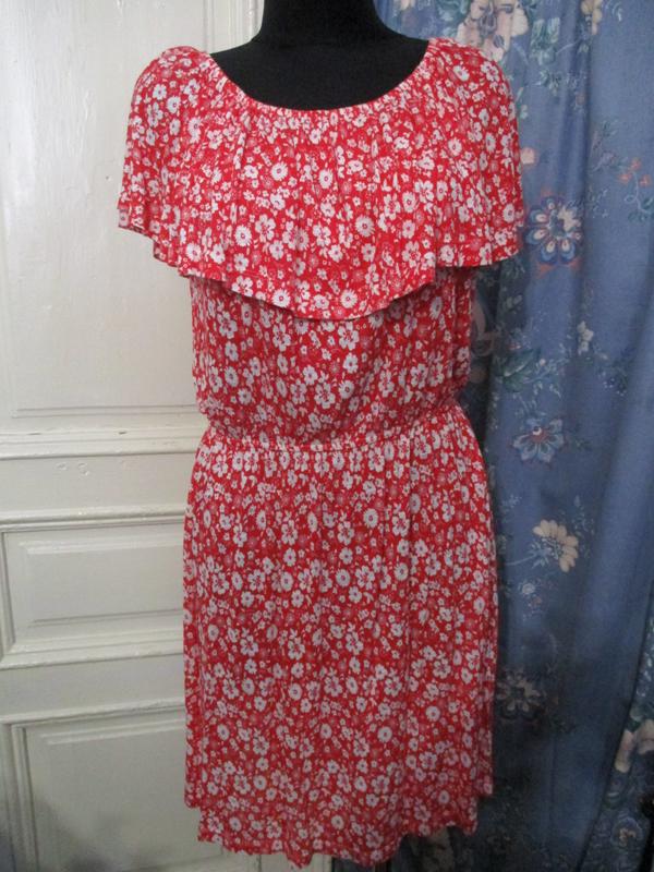 платье красного цвета.вискоза.ПОГ 57.ПОТ 38.длина 95см.на талии резинка
