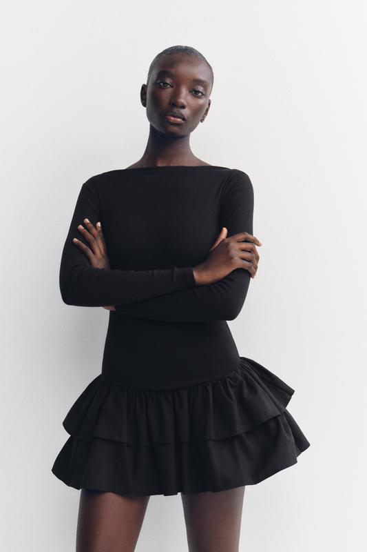 В НАЯВНОСТИ М размер Пожалуйста не делайте заказ через Шкаф Платье бестселлер доступно под заказ еще в 4-х цветах Облегающее платье с воротником лодочкой и длинными рукавами. Волани в тон унизу.