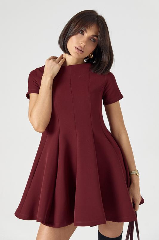 Женское короткое коктейльное платье мини с пышной юбкой красная, бордовая бургунди