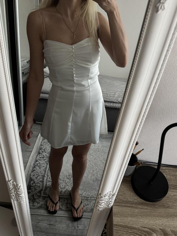 Сатинове плаття з красивими брителями,сідає шикарно,розмір 8(36)
