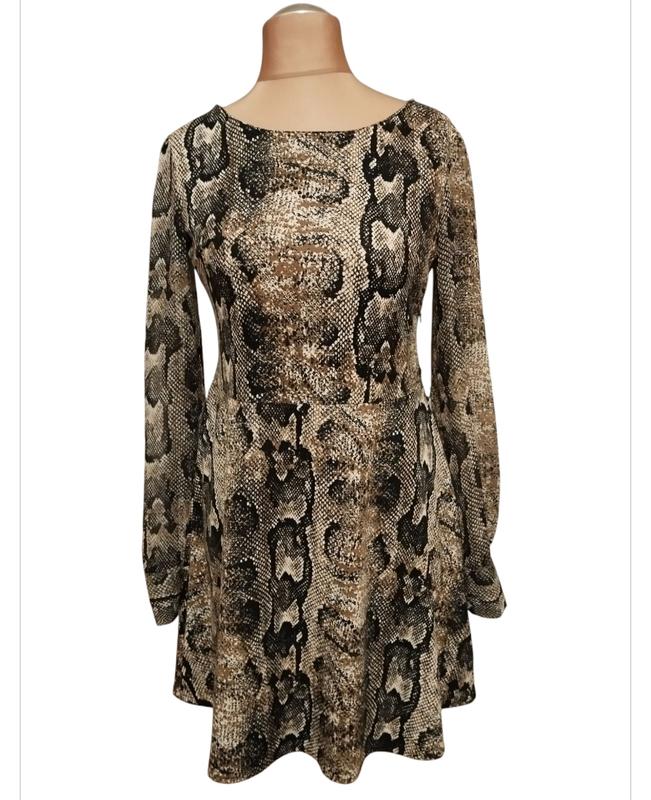Платье полусолнце с принтом "питон" и широкими шифоновыми рукавами