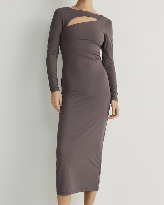 Женственное платье шоколадного цвета с асимметричным вырезом в размере м