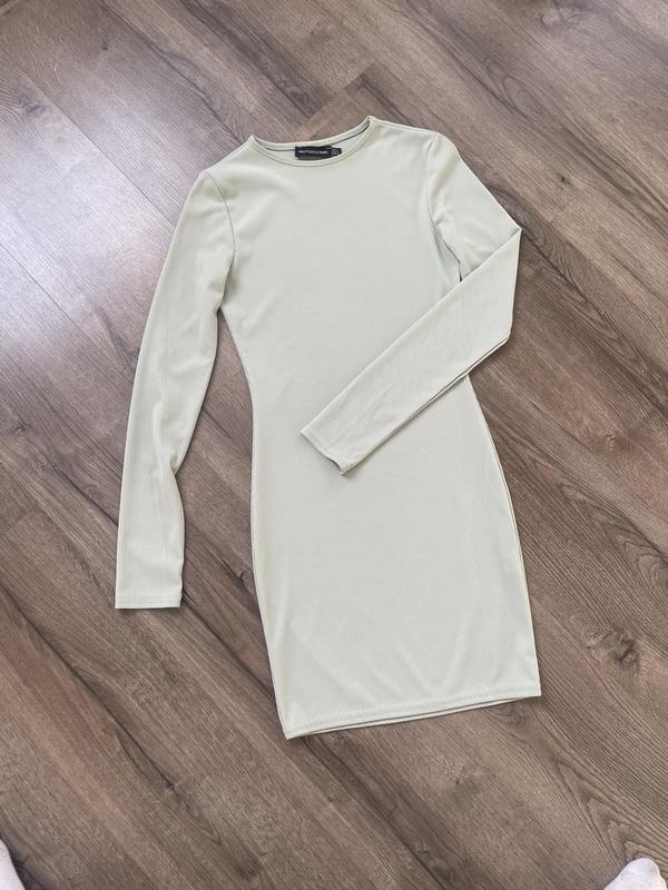 Платье фисташкового цвета в рубчик, не кашлатится. Размер XS.