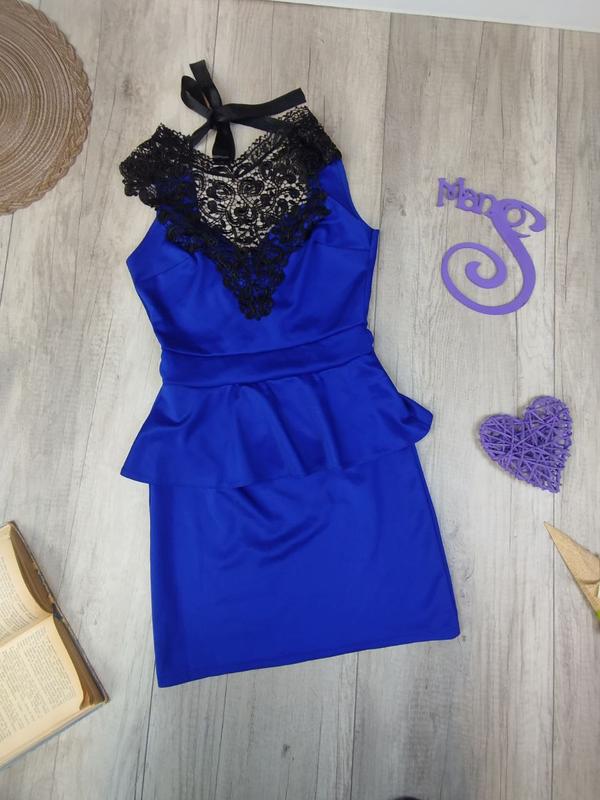 Женское платье look at me без рукавов с баской синее размер м (46)