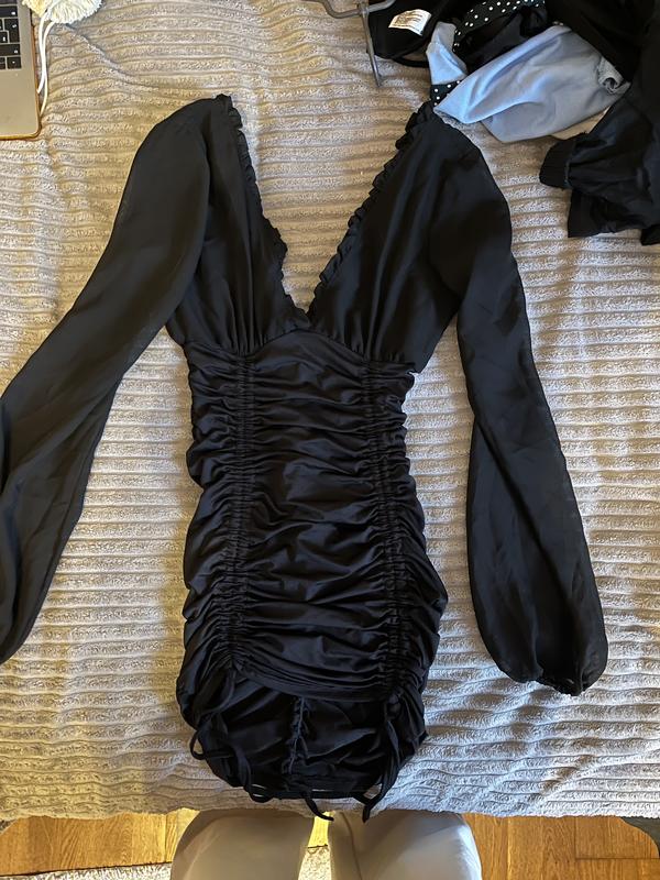 Платье невероятно красиво ложится по фигуре и подчеркивает ее. Ткань тянется, поэтому платье подойдет как на S/M так и на M/L