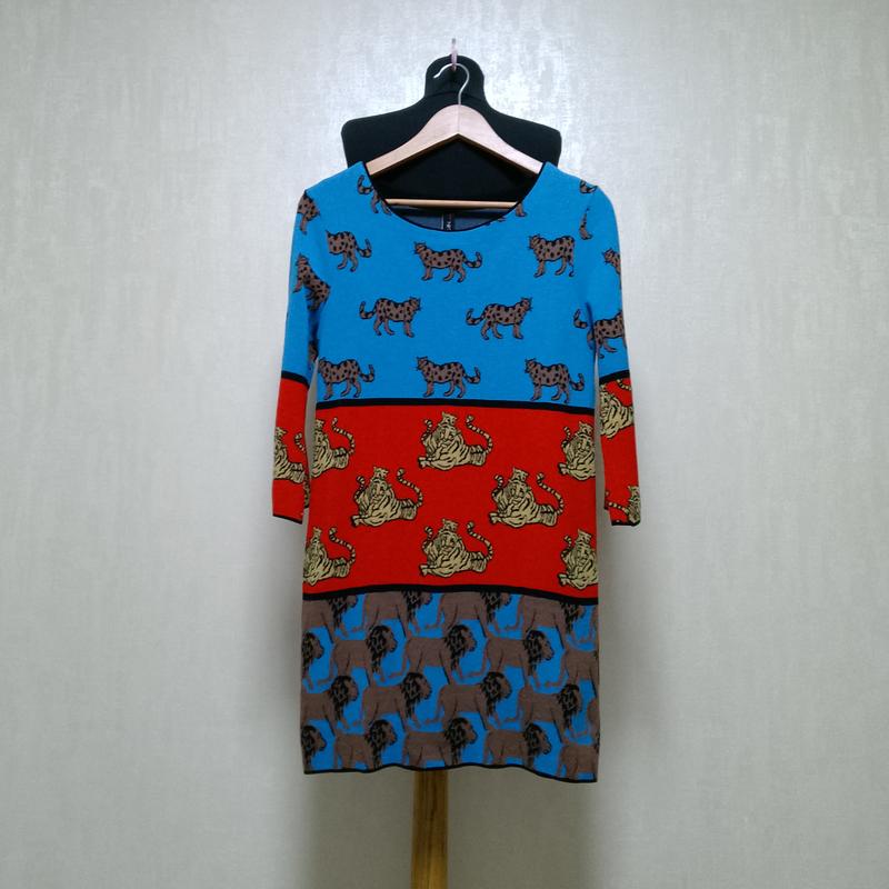 Очень яркое платье туника с анималистичным принтом из лимитированной коллекции навеянной сафари в Африке. Свободный крой, рукав три четверти, в составе модал, хлопок, полиэстер и полиамид, ткань немного тянется, в хорошем состоянии. Замеры (в спокойном состоянии): длина 82 см, по груди 92 см, талия 88 см, бедра 104 см, рукав 43 см, по плечам 39 см. Есть еще много интересной женской и мужской одежды и обуви, смотрите все Мои объявления и подписи на страницу, регулярные публикации обновлений.