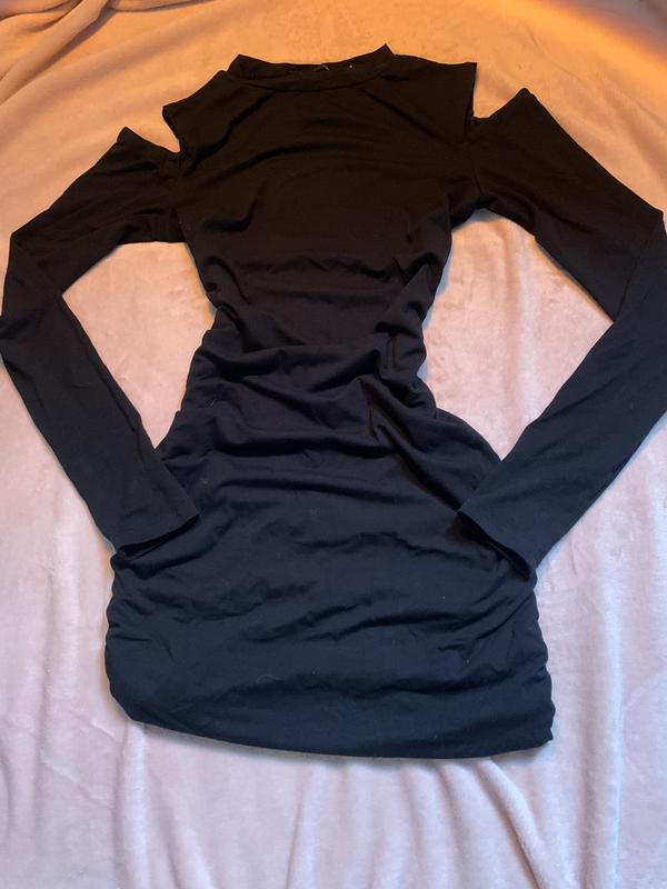 Платье с вырезом на плечках и затяжками с обеих сторон рукав от горловины 70см рукав от шва 54см длина платья 75см ( регулируется за счет затяжек)