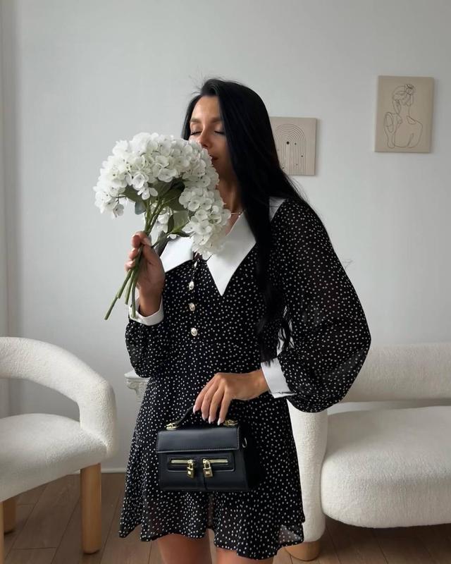 9104 Размеры: 42-44, 46-48 Тканина: софт Цвет: черная основа с белым горошком Платье, в котором вы полюбите себя еще больше. Вы будете неповторимы в таком образе