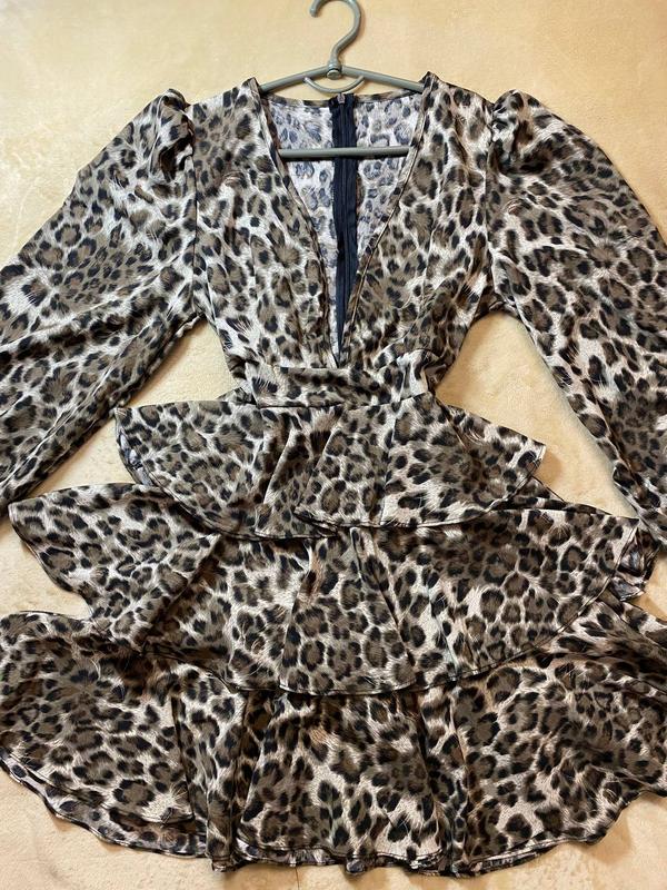 Весеннее платье на длинный рукав в леопардовый принт. Размер С. Очень выгодно подчеркивает фигуру, выделяет бюст и талию.