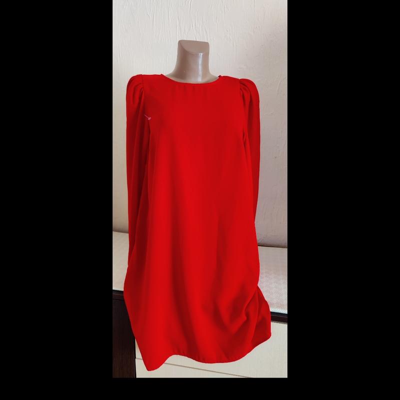 нова сукня . размер указан на м. , данная модель с нюансами на рукаве. длина 88см. полхват в комди 52см данная модель из вытачка. пол охват в поясе 54см. пол обхват в бедрах 55см