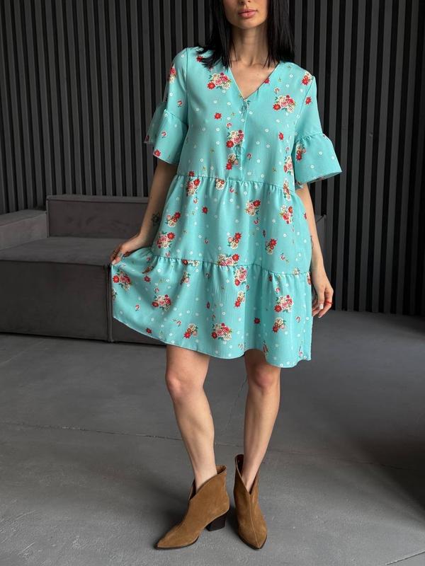 💫New yer collection💫 ⚪️В наличии 👕Сукня ⚫️Фото и видео реальные ⚫️Модель: 0030 ⚫️Размеры: 42-46 ⚫️Тканина: софт ⚫️Цвета: Мята, пудра, черный, голубой ⚫️Цена: 599грн Нежное платье в романтичный стиль. Свободное, слегка расклешенное, с ярусными воланами, создающими воздушный силуэт. V-образный, что добавляет женственности и визуально удлиняет шею. Короткие рукоятки с объемными воланами, придающими легкость и игривость образу. Это платье отлично подойдет для прогулок, свиданий или уютных встреч🥰