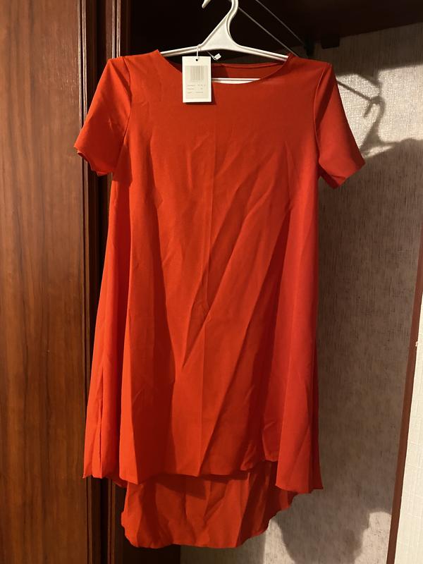 Червона сукня, з тонкого матеріалу, довжина 75см спереду, 98см по спинці, обʼєм грудей 90см
