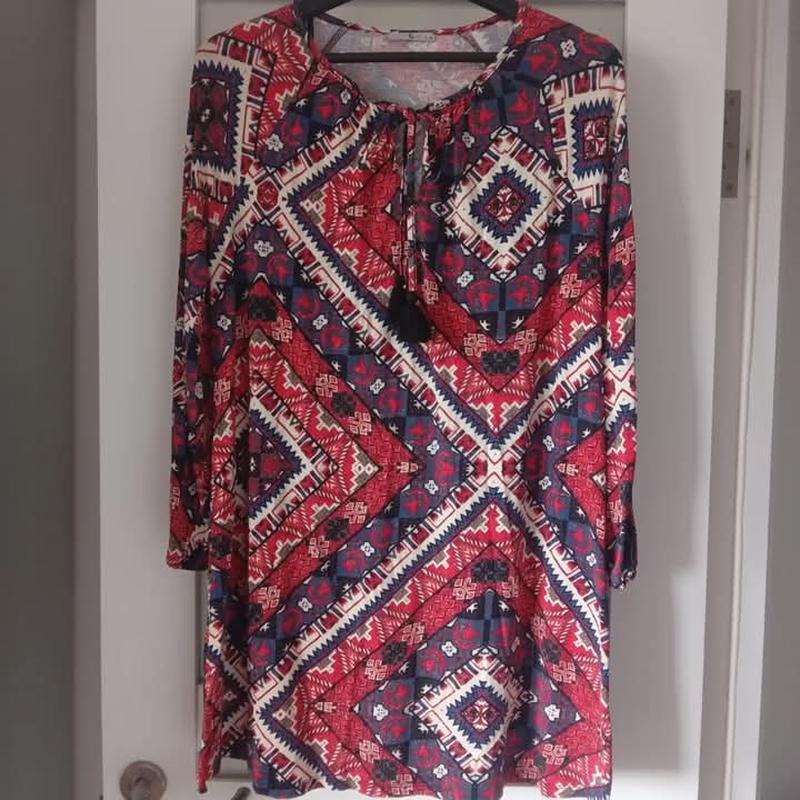 Трикотажная суконка мини в стиле 70х. Идеальное состояние. Основной цвет терракотово-красный. Размер L. Замеры по запросу.