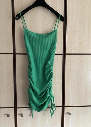 Мініплаття з бічними стяжками. У центрі довжина разом із бретелями 87 см. Бретелі без регулювання. На грудях 33, на талії 31, на стегнах 38. Тягнеться мінімум на 18 см. Котон із поліамідом. Дуже ефектне та приємне до тіла.