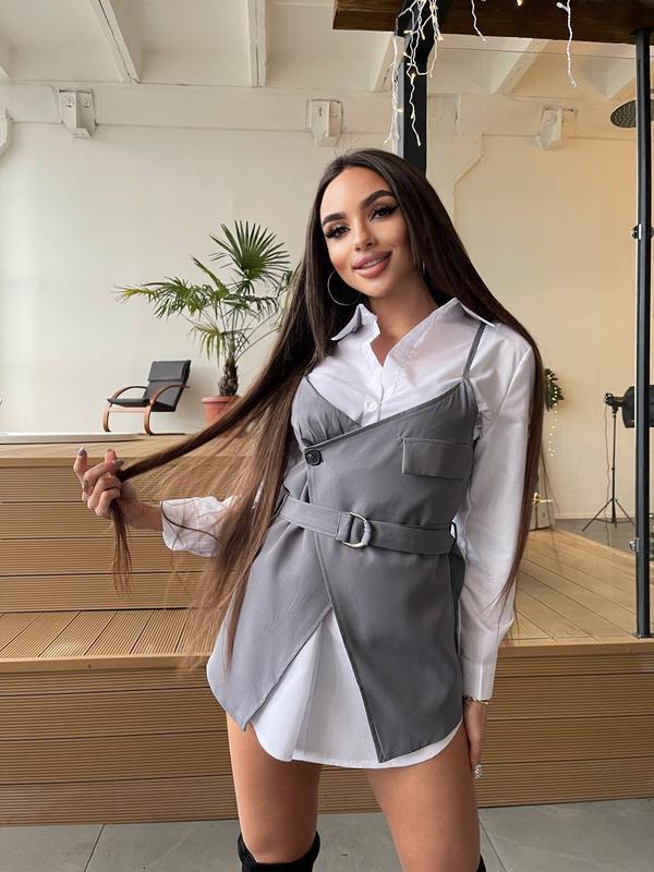 🔝🔝NEW 🖤🖤 Актуальный тренд 💣💣 Комплекты двойки - рубашки и сарафан-жилет🤩 Размер единый 42-44, длина 82-84см 〰️ Арт.942