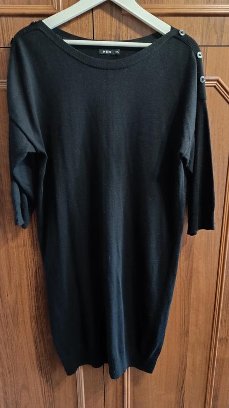 Ostin Чорне плаття, дуже круто виглядає. Рукав три чверті. Стан відмінний. 40%акрил, 30% viscose, 20% нілон, 10% cotton розмір: 48-50 довжина 96 см., пахви 51 см., Рукав 40 см., Стегна до 110