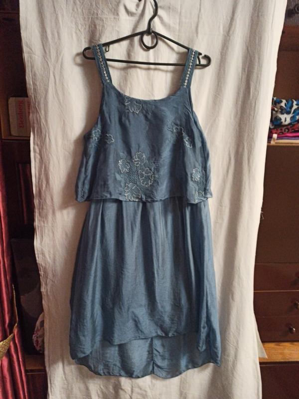 платье для принцессы (возможно на выпускной) производства Италии. Здесь все совпало: и цвет - темно-воликовый, и ткань -шелк, и тренды - прозрачность и асимметрию. Платье состоит из двух слоев: низ- вискозная основа и верх- прозрачный, невесомый шелк с вискозой. Лиф украшен вышивкой, юбка асимметричная, спереди короче, сзади длиннее. Ширина под проймой 46 см, пояс на резинке, длина подкладки 82 мм, длина верху спереду 93 см, ззаду 110 см. Продаж по полной оплате на карту
