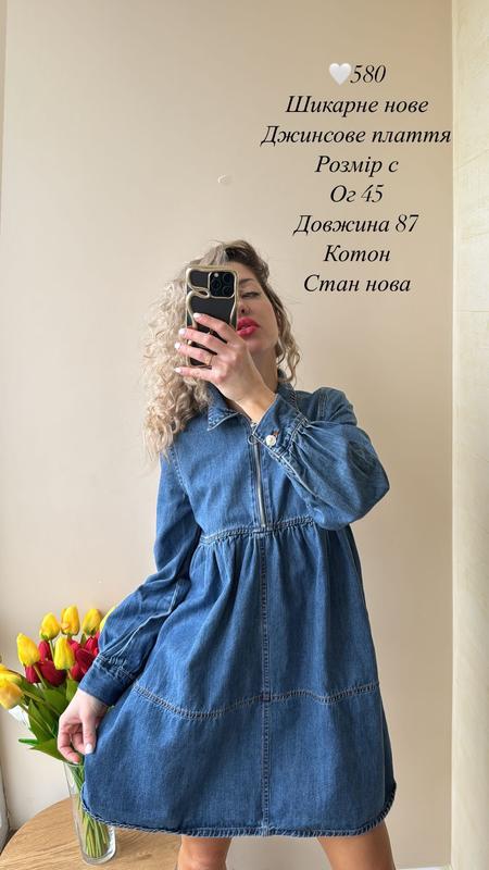 Отличное джинсовое платье, шикарное, новое, спереди застегивается на замке, в жизни очень красиво ложится по фигуре Размер с Ог 45 Длина 87 Котон Стан нова