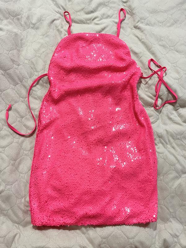 Коктельное платье от I saw it first, в пайетки, сзади очень красивая спинка из фнурочков, идет по фигуре. Ткань - полиэстер, размер - 10, 38.