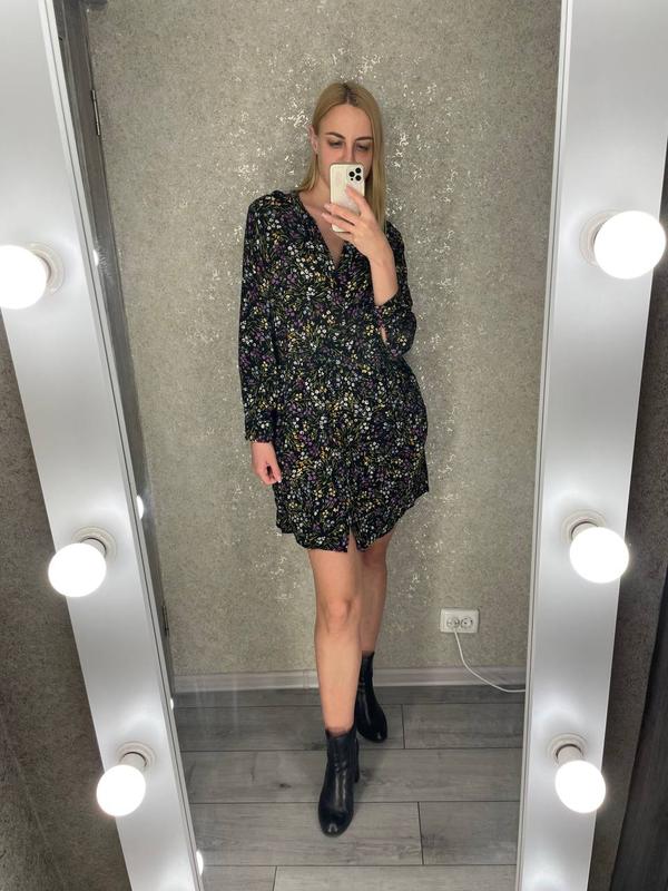 Легкое весеннее платье от George с длинным рукавом в цветочный принт размер 18, будет и на меньший 100% вискоза Замеры: пог 53-60 пот 44-58 пос 68 длина 89