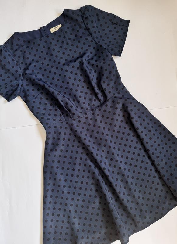 Платье темно-синего цвета в горох от Papaya Размер 10 Замеры: Длина - 90 см Полуобъем груди - 45 см Полуобъем талии - 37 см