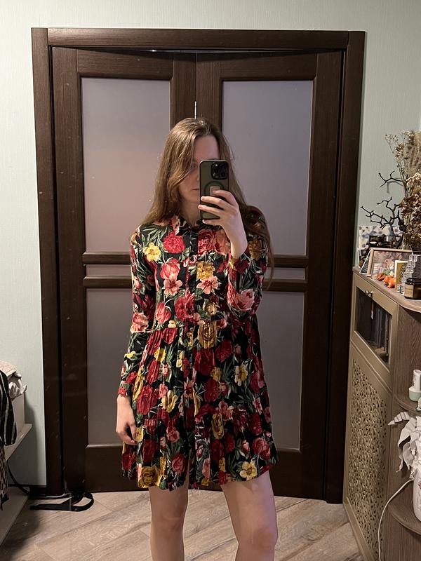 Очень красивое цветочное платье, приятное на ощупь, на пуговицах Одето на S, 170 см роста, лучше сядет на XS и меньший рост