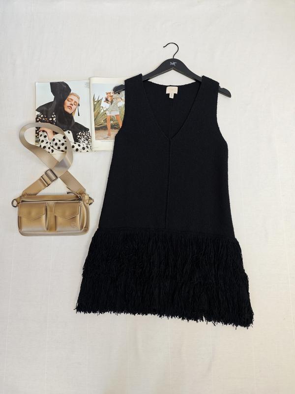 🌿черное платье с бахромой H&M ткань плотная вязка, красиво держит форму Размер:L Замеры:ПО груди 48 см, длина 83 см