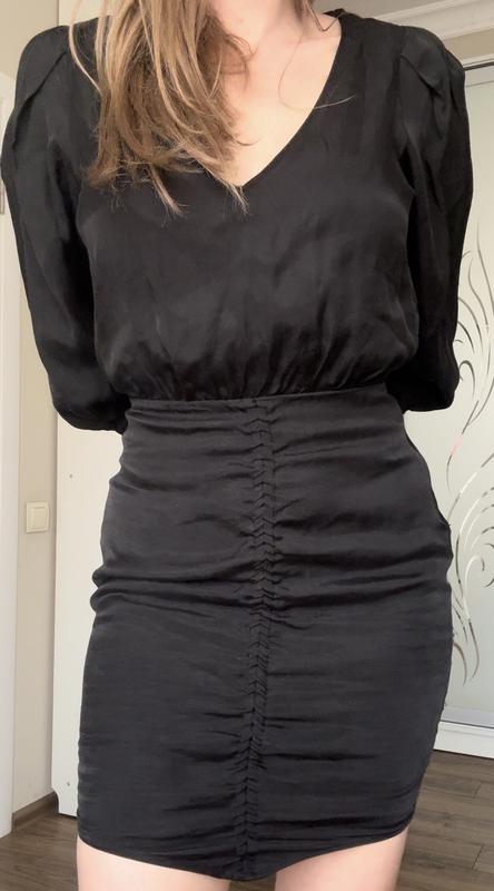 Эффектное платье от Zara Новая, без бумажной бирки Сбоку на молнии На подкладке Трошки тянется Замеры Пог 48 Пот 34 Поб 43 Рукав 59 Длина 85