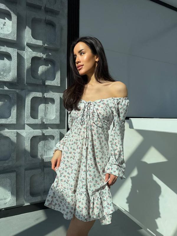 Жіноча сукня софт коротка літня з довгим рукавом квіткова плаття 489