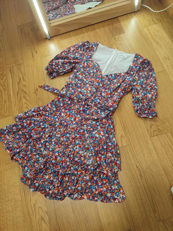 нестандартное, интересное платье в мелкие цветы, на замке с ремнем) состояние идеальное, размер указан xs длина -78см пог-37см рукав -33см пот-31см поб-51см