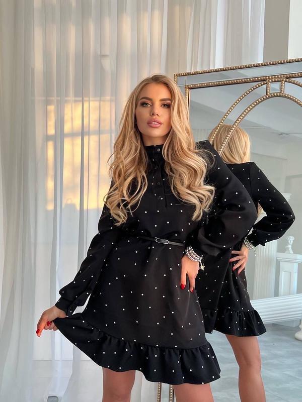 Сукня арт. rkot. 447 Размеры: S, M, L, XL Цвет: черный Ткань: костюмная (мягкая и приятная на ощупь) Модель свободного покроя, с длинным рукавом, манжет и планка по груди застегиваются на пуговицы. Можно носить с поясом и без. Пояс входить до комплекту. Отличное качество.