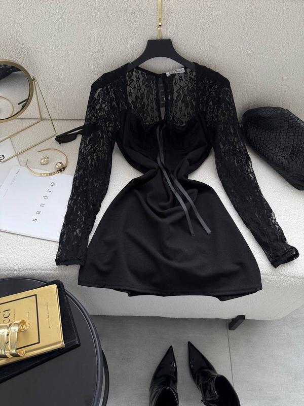 Женское гипюровое короткое платье в базовом цвете