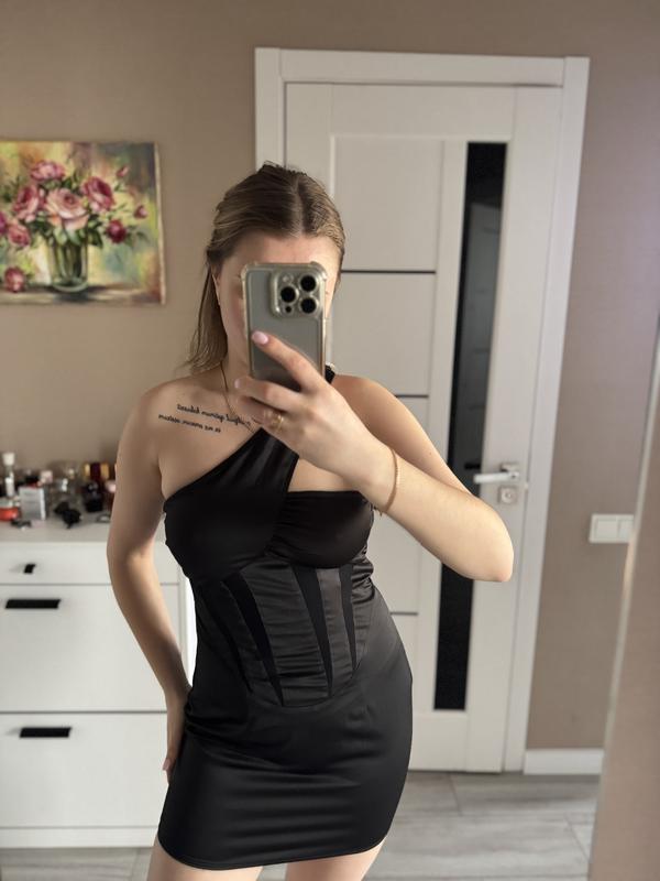 Асиметрична чорна сукня з імітацією корсету Збоку на змійці По грудях та спині клейка стрічка