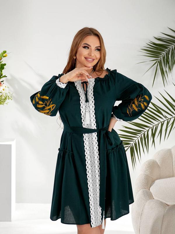 Рукоятное льняное платье с вышивкой, украинное платье вышиванка с кружевом, этно платье с...