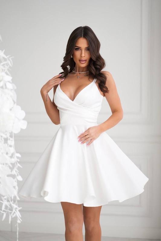 Модель 7521 Размер 42 (S), 44(M) 46(L) Атласное платье с длиной выше колен, расклешенной юбкой «солнце», с двойными бретелями. Дальность: 90 см Тканина: Атлас Цвета: черный, молочный, голубой, бежевый, фреза