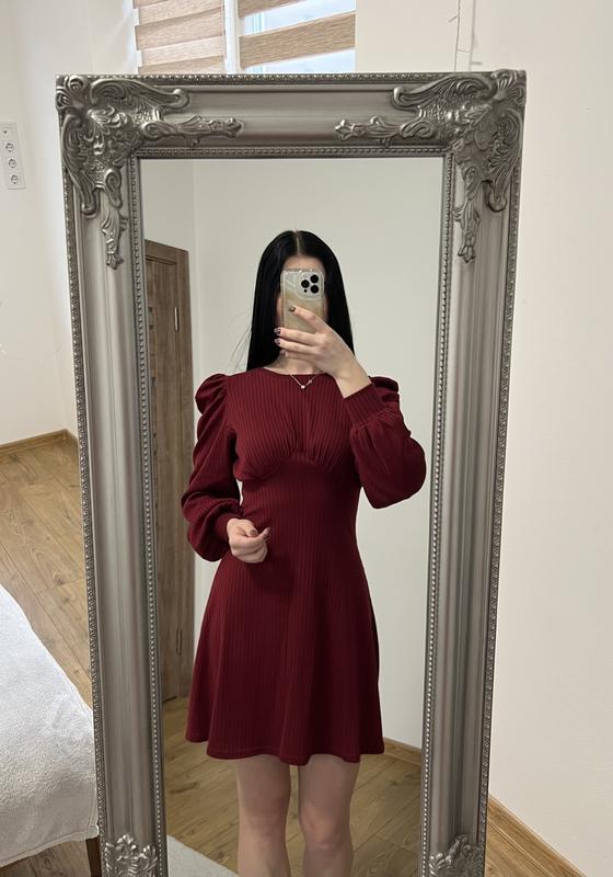 Бордова сукня з красивими зібраними рукавами ПОТ - 33,5 см ПОГ - 45,5 см Спущений рукав - 69 см Довжина - 89 см Не Zara. УКРПОШТОЮ НАДСИЛАЮ ЛИШЕ ПО ПОВНІЙ ОПЛАТІ НА КАРТКУ!